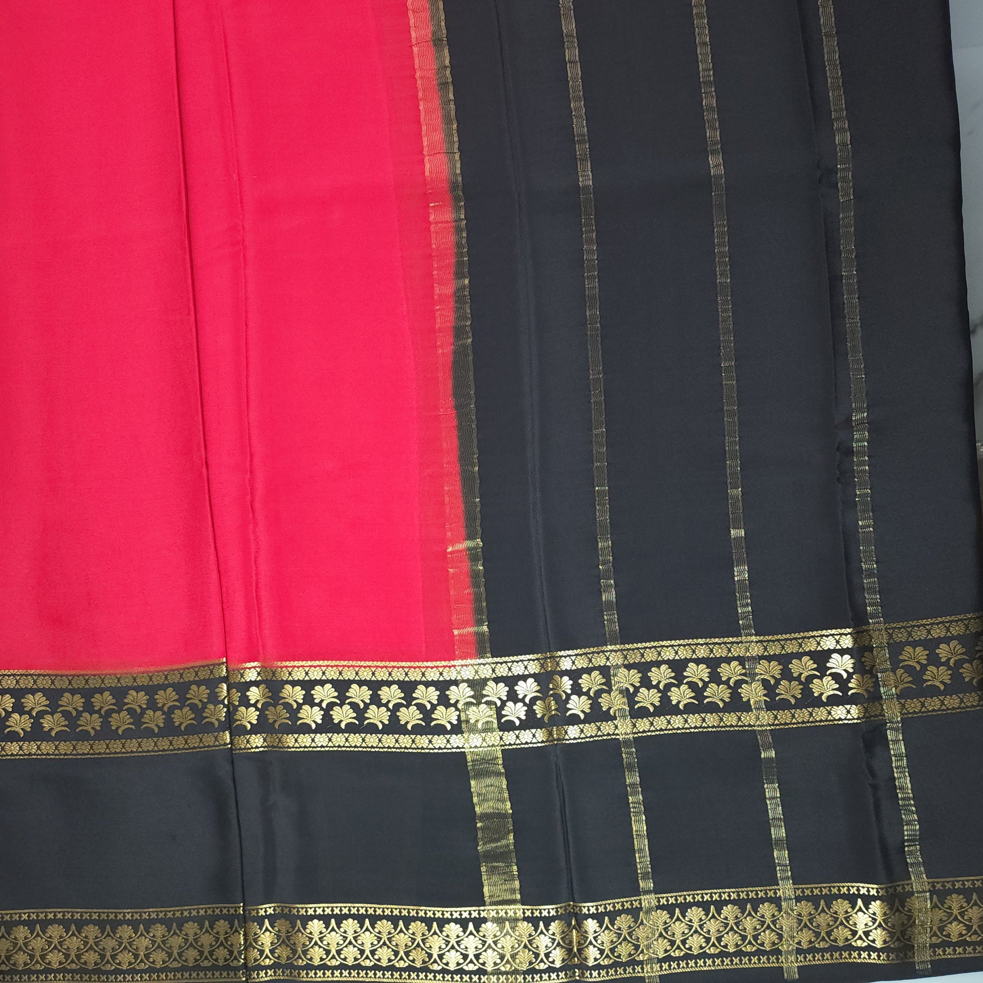 Silk Mark Certified Pure Mysore Crepe Silk Saree with 3D Bentex Border (Red with Black combo)