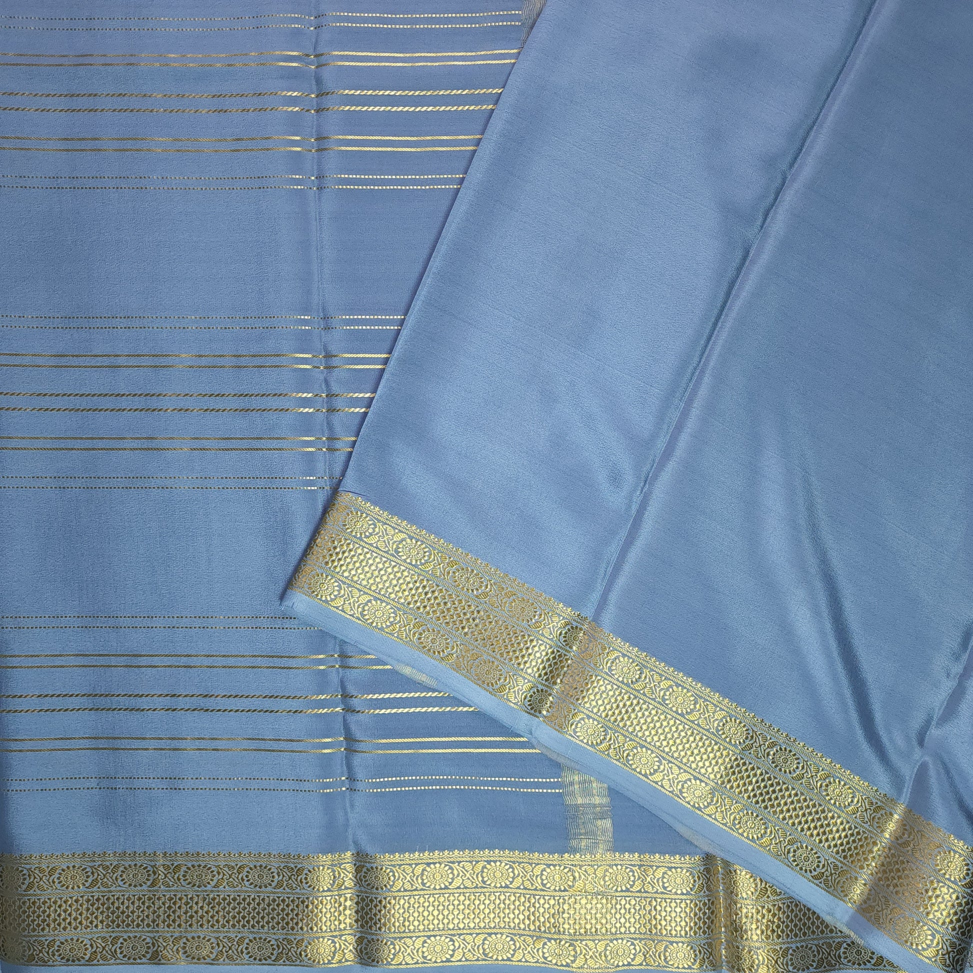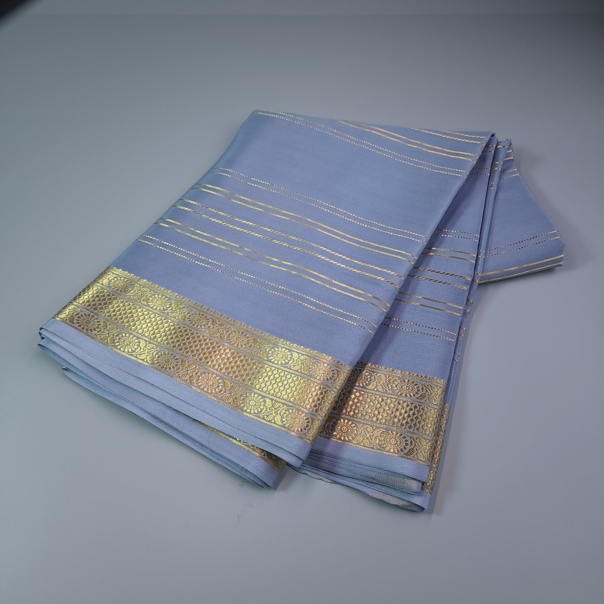 Silk Mark Certified Pure Mysore Crepe Silk Saree with Golden Stripes